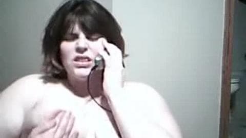 Esta mulher gorda está ficando excitada e desfrutando de sua conversa erótica no celular. Ele se masturba com os dedos porque fica muito quente