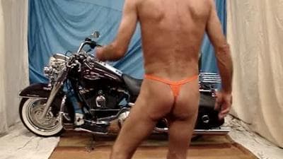 Esse avô gosta de dançar sensualmente na frente da câmera e se despir. Ele acaricia seu pau que não é ruim e por trás dele tem uma harley.