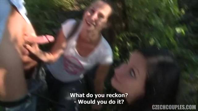 Um casal ganha dinheiro para fazer um ménage à trois. Uma vagabunda oferece dinheiro a um casal para um ménage à trois ao ar livre.