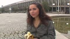 Hoje essa vagabunda vai bombar no pênis de um estranho que joga porra no olho dela!