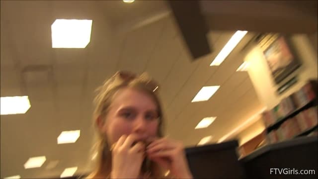 Esta loira muito cativante andará pela cidade nua sem roupa íntima, se mostra em público e depois se toca.