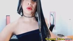 O que esta transexual tem em seu corpo é muito calor sexual porque ela quer se masturbar na frente da câmera com prazer