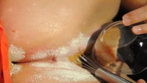 Esta é uma maneira estranha de preparar um bolo. Uma mulher coloca todos os ingredientes na bucetae será muito gostosa.