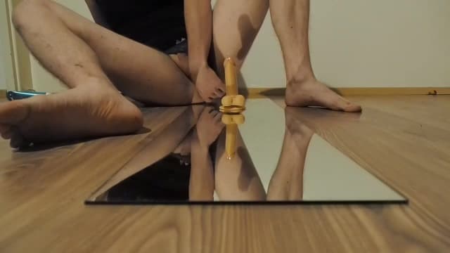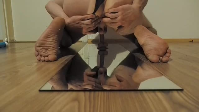 Vamos ver o quão bem este gay está sentado em um vibrador que está preso a um espelho para que ele possa ver o rosto do prazer refletido.