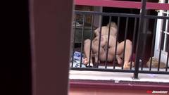 Ela estava com o namorado espionando os vizinhos, vendo o cara se aproximar da garota, excitá-la e começar a transar na varanda