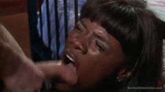 Ele sabe que essa negra é muito puta e por isso a maltrata e a castiga enquanto a fode amarrada para que ela não escape.