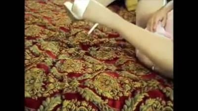 Gay em lingerie, saltos altos e masturbação de meias