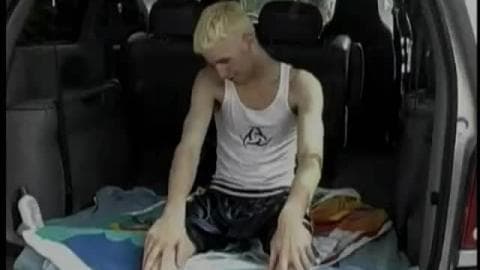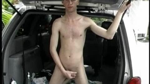 Andrew Blaze está se masturbando na traseira do carro e esperando que alguém o veja para se envolver, para ver se ele tem sorte.
