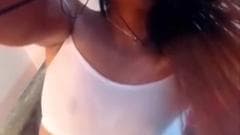Ela está de lingerie branca e vai brincar sozinha para o delírio dos fãs. Ela acaricia o cuzinho e as bolas e bate uma bela punheta de mão cheia!
