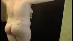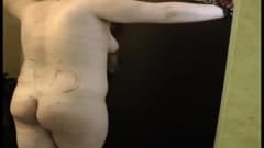 Essa travesti gordinha tem um fetiche estranho e é que ela fica excitada quando sua bunda é presa com uma pistola de chumbo.