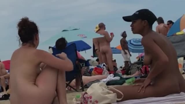 Não perca, pois esse cara fica animado ao ver duas garotas tomando banho de sol em uma praia de nudismo e esguichando na frente delas!