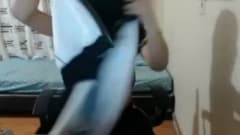 A boazuda está na cam, brincande de leve, com as mamas redondas à mostra, um pênis, de fazer inveja, no qual ela masturba e dá batidinhas, e uma bela bunda