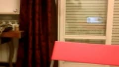 Este travesti amador é um verdadeiro brincalhão. Em lingerie transparente, ela mostra seus peitos grandes, sua bunda grande e seu pau grande.