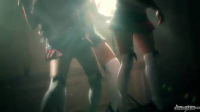 Três adolescentes com seus uniformes escolares se preparam para um show sexy com três machos poderosos que vão se divertir com elas!