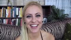 Este vídeo POV apresenta uma loira sexy chupando um pau grande e chupando suas bolas para receber uma grande gozada em seu rosto!