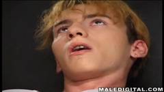 Um jovem vestido com um terno branco sexy tocando suas bolas e seu pênis e exibindo sua bunda sexy.