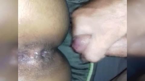 A mulata deita com as pernas abertas e relaxa para o namorado cuidar do seu ânus. Ele mete calmamente e ela desfruta até ele gozar dentro. Delícia!