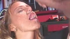 Esta bela loira visita seu mecânico e o seduz até o convencer a transar com ela. Ela disse a ele que não há necessidade de deixar a oficina para transar, e mesmo lá, seu rosto será coberto de leite branco!
