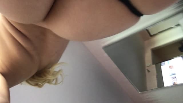 Aqui está uma loira feliz em se tocar para nós! Ela se filma acariciando suas belas curvas!