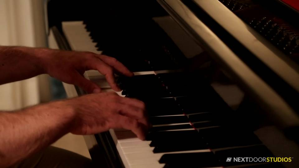 O jovem músico só pensa no galo do professor bonito que o fará relaxar quando comer ele no piano.