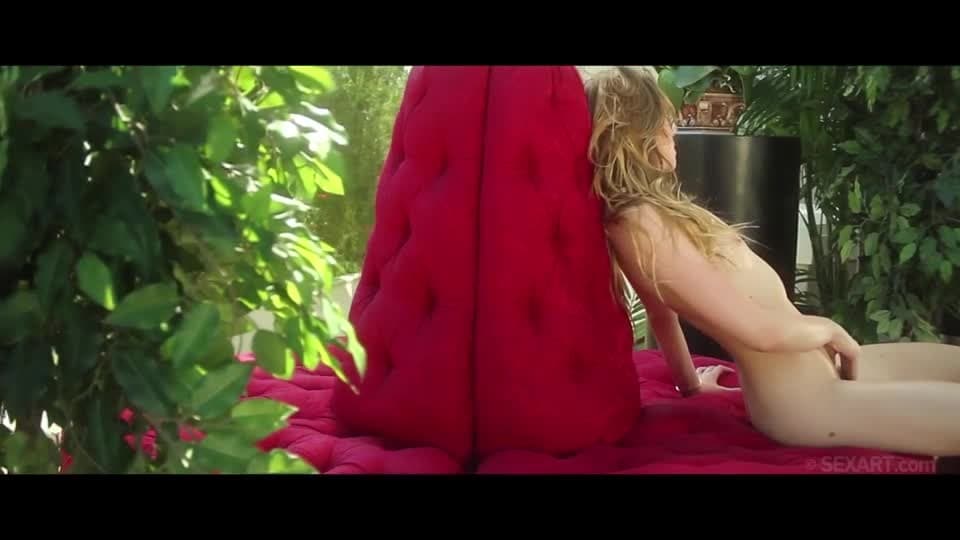 Este é o lugar perfeito para agradar seu bichano: ao ar livre num sofá vermelho e confortável ... A perfeição para tocar seu bichano peludo!