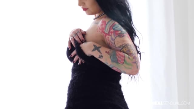 A garota tatuada Draven Star, apaixonadamente fodendo com um homem também com um monte de tatuagens que a excitam.