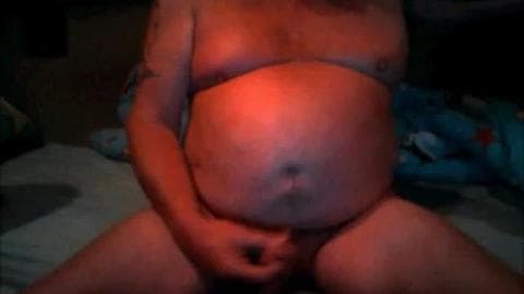Papai gordo e grande com um pinto pequeno gosta de se masturbar na frente da câmera até gozar.