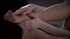 Uma senhora quente sentindo-se tão excitada em casa sozinha que se deitou no chão e começou a se masturbar e a gemer tão alto