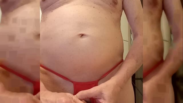 Esse cara maduro está excitado, pois tudo o que ele quer é mostrar seu corpo nessa tanga e colocar anéis de metal em volta de seu pênis e bolas