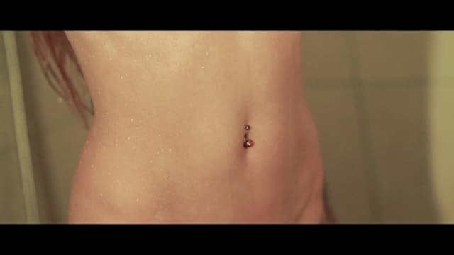 A espetacular ruiva tatuada acaricia seu corpo sensualmente no chuveiro enquanto apreciamos seus mamilos com piercing e sua buceta depilada.