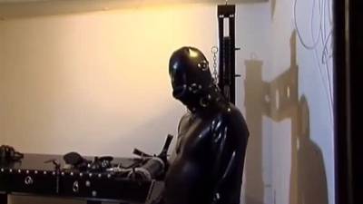 Eles amam o BDSM ao máximo. Vestidos com látex da cabeça aos pés, deixando seu pau e sua buceta mal expostos, ela chupa seu pau e depois fode um dildo