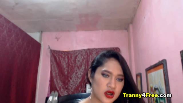 Travesti de pele clara em lingerie sexy