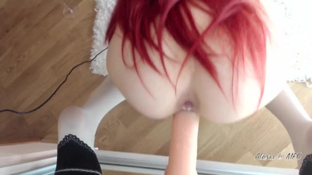 Ela colou o dildo no espelho para que ela possa desfrutar de montar enquanto ela está de pé gemendo e apreciando dentro dela
