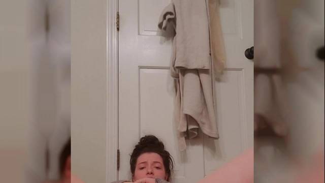 Essa morena fofa está feliz por estar esfregando sua buceta e se masturbando até estar pronta para o clímax e alcançar seu orgasmo na casa de banho