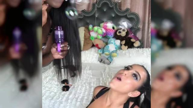 Lena está se divertindo um pouco com sua amiga, pois eles estão se lambendo e espancando um ao outro antes de nos mostrar como eles se sentam.