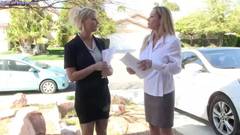 Essa mulher se masturba na frente de um filme pornô e na frente do namorado. Uma namorada se junta a eles e fode em todas as direções.