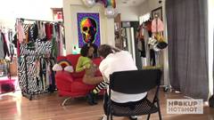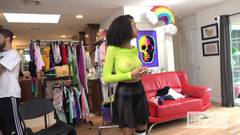A bela jovem mestiça fará uma sessão de fotos e experimentará algumas roupas, pois seus seios são impressionantes.