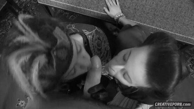 Esse grupo de amigos está se divertindo fazendo um filme pornô vintage em preto e branco, e as duas mulheres vão curtir o pau em POV.