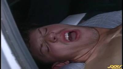 Cameron Fox e Joe Foster praticam a sodomia no porta-malas de um carro durante uma pausa de trabalho, os dois mecânicos estão excitados.