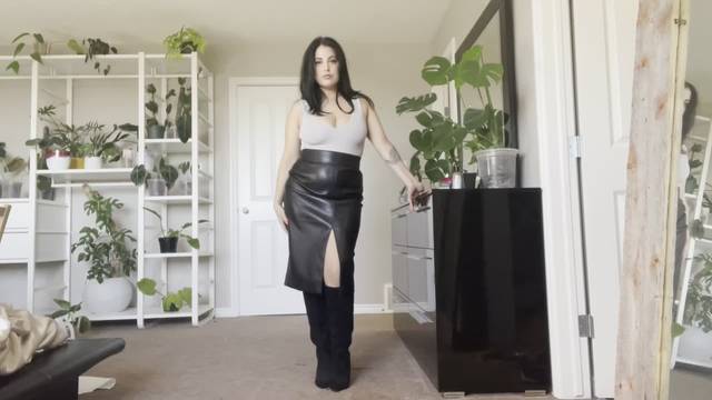 Seu namorado pediu à morena sexy que fizesse um vídeo quente para ele. Ela usa botas de cano alto e provoca sua buceta até gozar para ele.