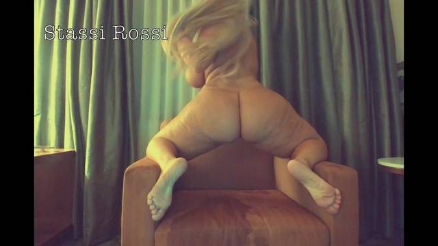 A loira Stassi Rossi tem um corpo generoso, um grande traseiro apetitoso que ela gosta de exibir em frente à câmera enquanto se masturba na cadeira.