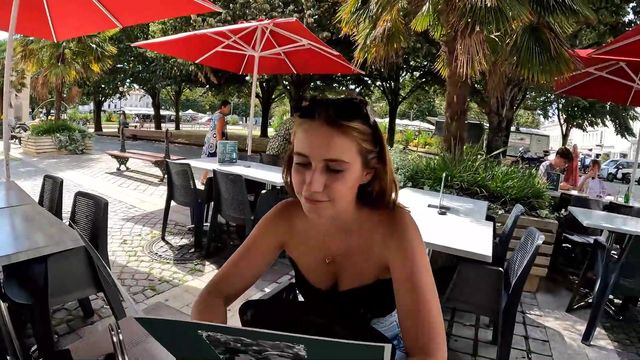 ![À noite, ela usa seu skate para mostrar seus peitos na rua. À noite, ela usa seu skate para mostrar seus peitos na rua.]()