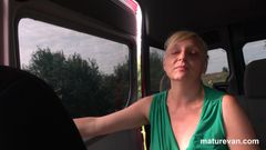 Um jovem bonito se encontra em uma van com uma loira gorda e madura com uma bunda grande esperando por ele. A vadia quer que ele a foda bem, veja!