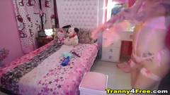 ![Duas jovens trans brincam com seus pênis juntas Duas jovens trans brincam com seus pênis juntas]()