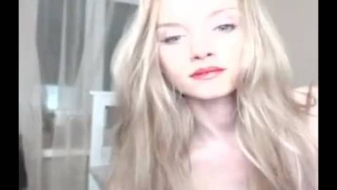 Todos nós adoramos esses corpos perfeitos. Essa loira de olhos claros e lingerie sexy vai se despir e tocar sua linda buceta