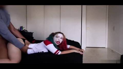 Uma jovem vadia pintou o rosto de branco e os lábios de vermelho só para se divertir com um negro que vai acabar deixando que ela lhe faça sexo oral.