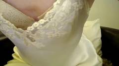 Essa jovem transexual veste sua lingerie branca sexy e bate uma punheta na frente da web. Imperdível!