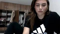 Garota trans esportiva, tira seu pênis para fora e se esfrega com seus dedos habilidosos. Ela quer explodir em cima de si mesma!