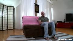 Homem branco e careca, tem sua bunda apertada rasgada por um grande pau negro, nesse vídeo interracial.