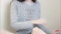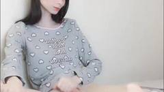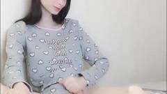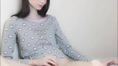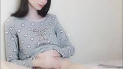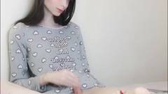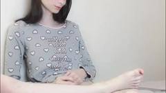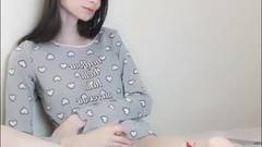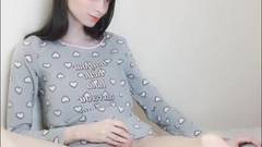Uma transexual de pele clara cria coragem para se masturbar na frente da câmera para os espectadores.